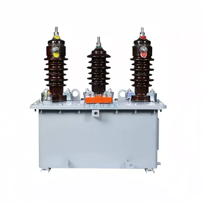 This Oil Immersed Combined Instrument Transformer, also known as an oil-immersed high-voltage metering box, is independently developed by Anqiang Electric and is suitable for both indoor and outdoor use. The three-phase three-wire metering box consists of two single-phase voltage and current transformers, while the three-phase four-wire metering box consists of three single-phase voltage and current transformers. These are installed in a box enclosure, with the primary and secondary terminals using porcelain bushings mounted on the panel. An electricity meter is installed on the outer surface for metering purposes.
